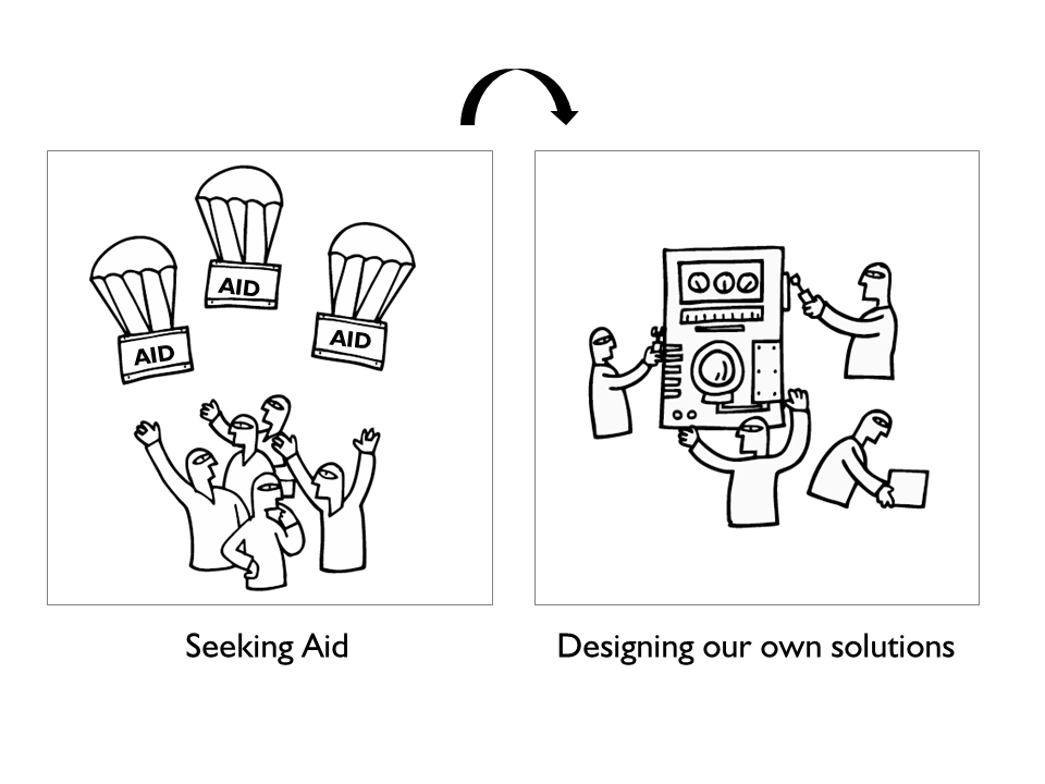 Waiting for external aid & support to designing our own solutions