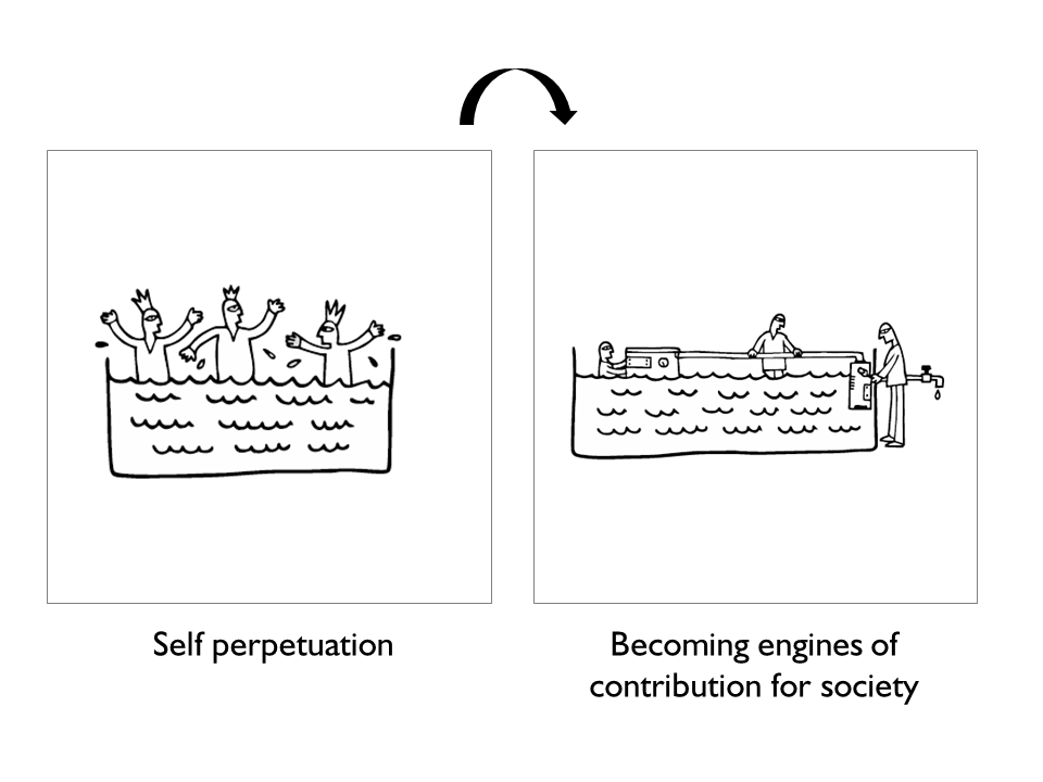 Move beyond self-perpetuation and move to becoming engines of contribution for society